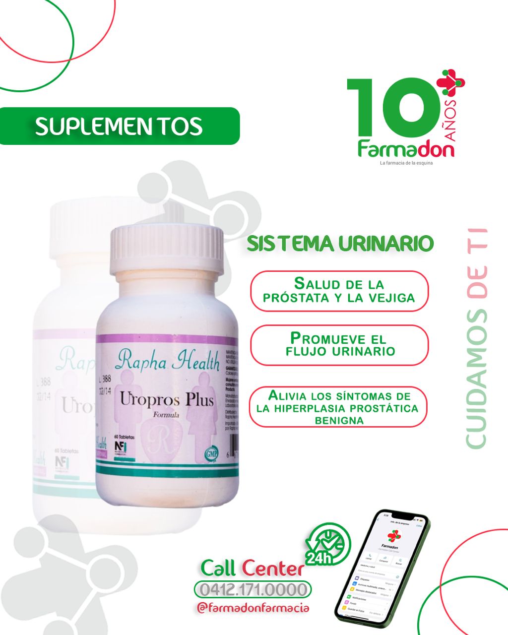 Apoya la salud del sistema urinario con Uropros Plus de Rapha Health. Estas cápsulas formuladas con ingredientes naturales ofrecen un apoyo integral para la función saludable de la próstata y la vejiga. Con una combinación de hierbas y nutrientes, Uropros Plus promueve el flujo urinario saludable y alivia los síntomas asociados con la hiperplasia prostática benigna. Tomar diariamente para mantener la salud del tracto urinario.