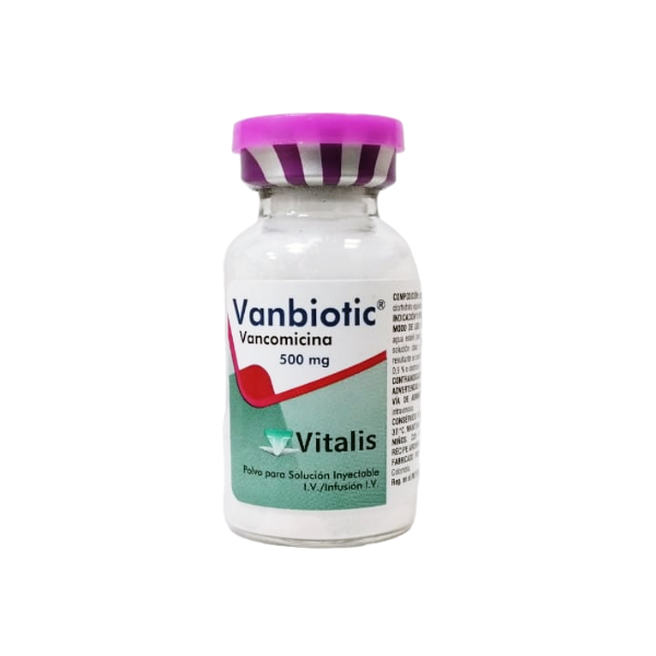 Antibiótico en ampolla de 500mg polvo para solución Inyectabel administración intravenosa. Marca: Vitalis.