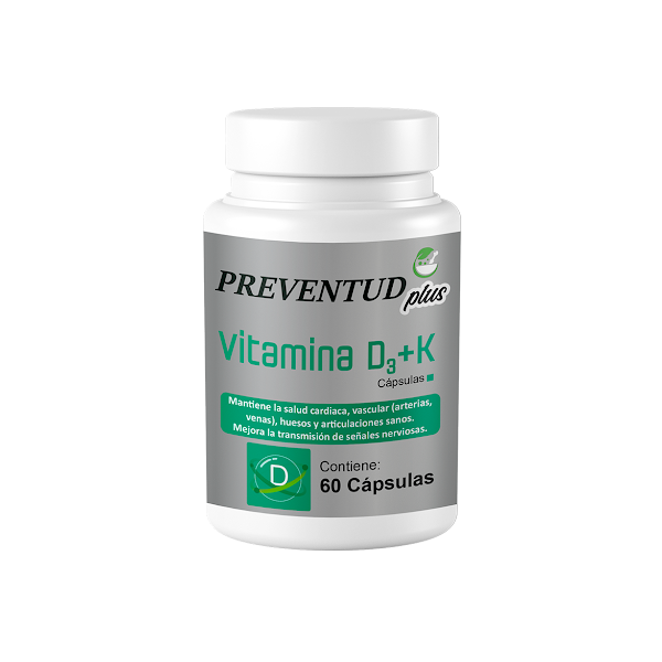 El suplemento Vitamina D3 5.000Ui + Vitamina K 50Mcg de Preventud incluye 60 cápsulas. Esta combinación de vitamina D3 y K2 es esencial para el soporte del sistema inmunológico, la salud ósea y cardiovascular. La vitamina D3 ayuda en la absorción de calcio, mientras que la vitamina K2 es crucial para la adecuada utilización del calcio en el cuerpo.