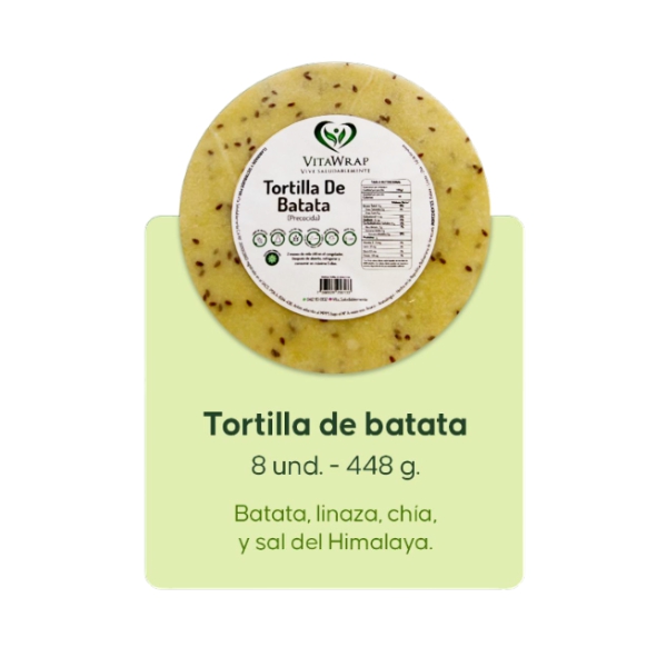 Prepara deliciosos wraps con estas tortillas de batata precocidas en paquete de 8 unidades de Vitawrap. Ideales para tus comidas rápidas y saludables.