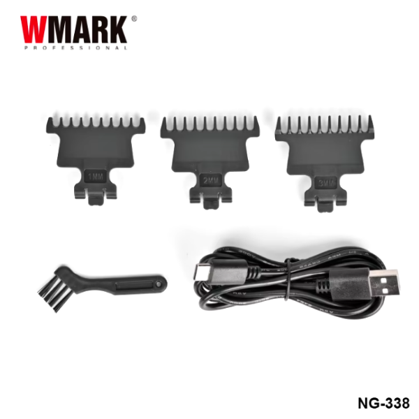 Máquina de corte Wmark modelo NG-338 para un corte de cabello y barba profesional. Con tecnología avanzada y cabezales ajustables, proporciona un corte preciso y uniforme. Perfecta para uso en barberías o en el hogar.