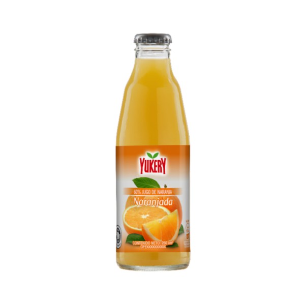Refrescante jugo natural de naranja. Botella de vidrio 250ml